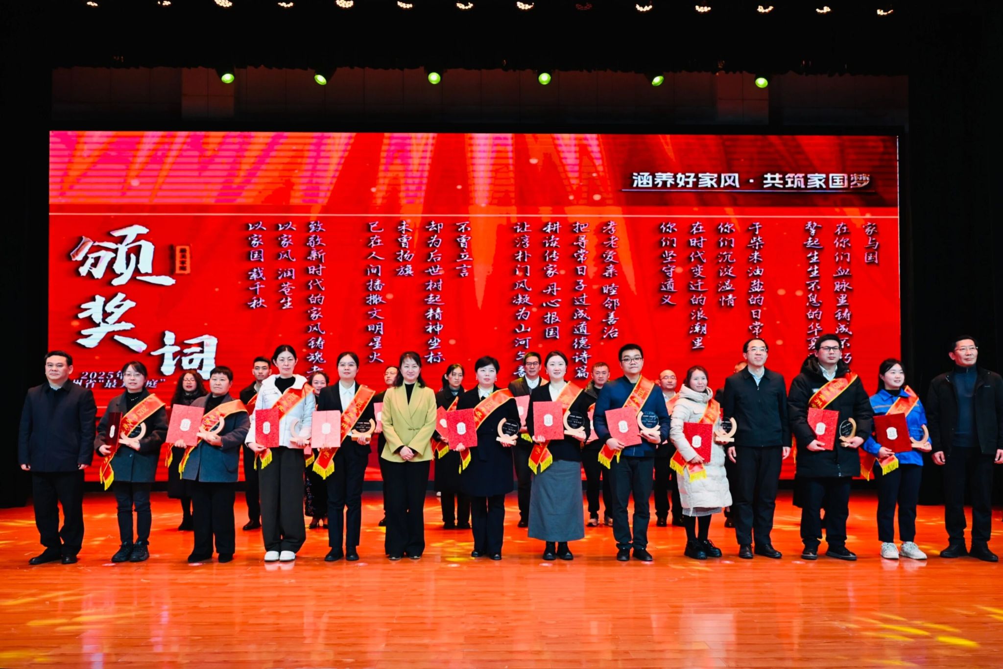 12月17日,2025年度贵州省“最美家庭”发布暨“身边的好家风”分享活动在贵州师范学院举行。本次活动由中共贵州省委宣传部、贵州省妇女联合会主办,贵州师范学院协办,以“涵养好家风·共筑家园梦”为主题,现场揭晓60户2025年度贵州省“最美家庭”名单,我校档案馆教师刘赟博家庭成功入选。刘赟博家庭秉持和睦友善、担当奉献的家风,以爱凝聚家庭力量,以责任践行初心使命。家庭成员相互扶持、携手共进,在经营温馨和睦小家庭的同时,...