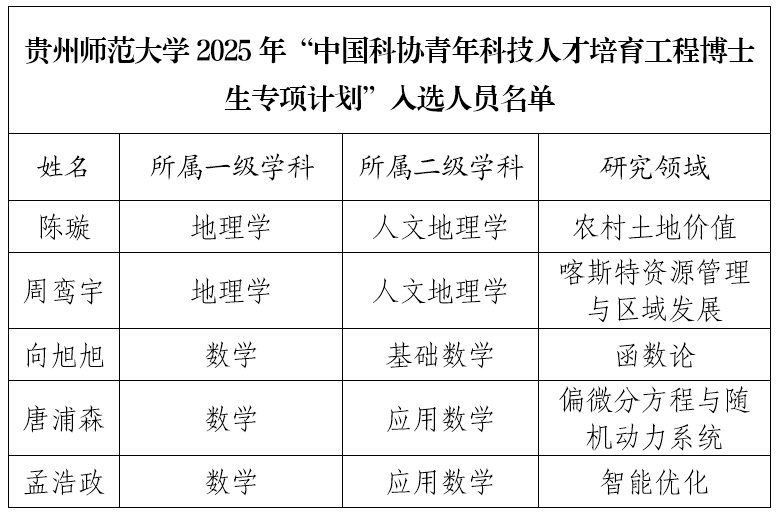 近日,2025年“中国科协青年科技人才培育工程博士生专项计划”入选名单公布,我校5名博士研究生凭借扎实功底与突出潜力成功入选。这不仅是对入选者个人的高度认可,更彰显我校在青年科技人才培养领域的扎实成效与鲜明优势。据悉,中国科协青年科技人才培育工程博士生专项计划是中国科协为培养具有国际视野与创新能力的青年科技人才而设,前身为青年人才托举工程博士生专项。它聚焦国家战略与前沿科技,通过省级科协与全国学会双推荐双培育机制,...