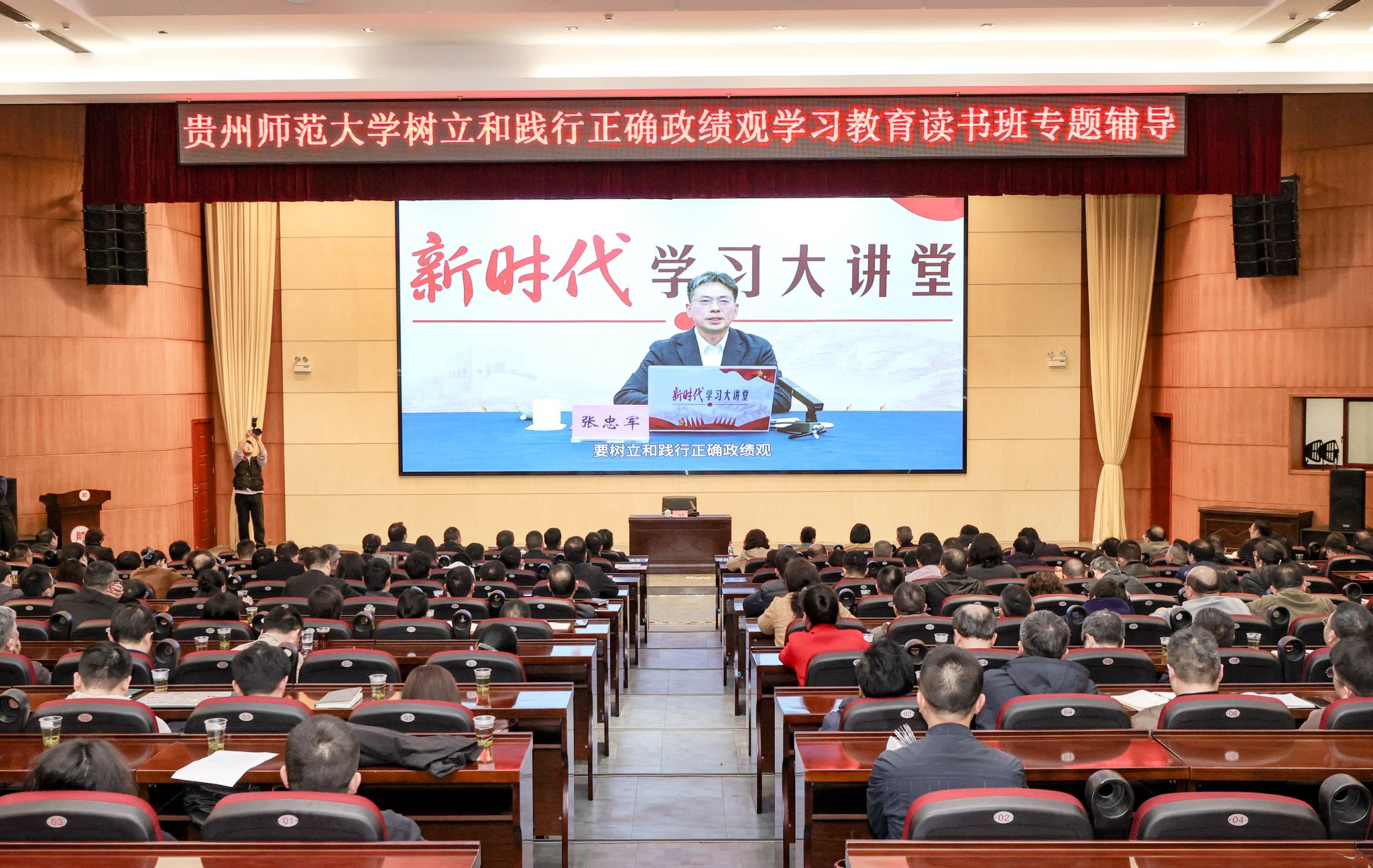 3月23日-24日,贵州师范大学举办树立和践行正确政绩观学习教育读书班。23日下午,开班式暨专题辅导在东区会议中心一楼学术报告厅举行,校党委副书记、校长张绍东作动员讲话,校领导陈应勇、路言莉、骆最勇、刘瑾、冯海涛、伍权、张道伟、吴复忠出席,全校处级干部、学习教育专班成员参加。