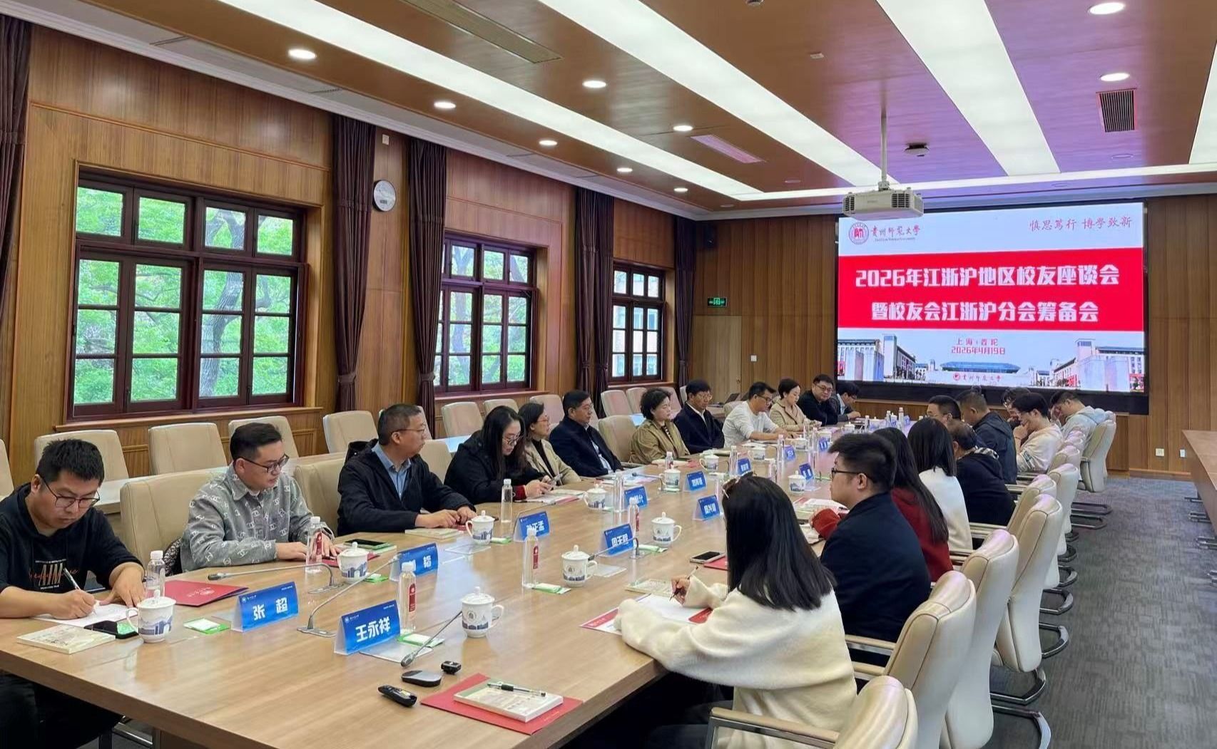 4月19日,我校江浙沪地区校友座谈会暨校友会江浙沪分会筹备会在上海召开,江浙沪地区校友代表齐聚一堂,共叙贵师情谊,共绘发展新篇。副校长张道伟主持会议。贵州师范大学校友会冶金分会会长张皓、粤港澳大湾区分会副会长彭强、校友企业家协会副秘书长冯林美出席。学校办公室、校友会相关负责人参加。