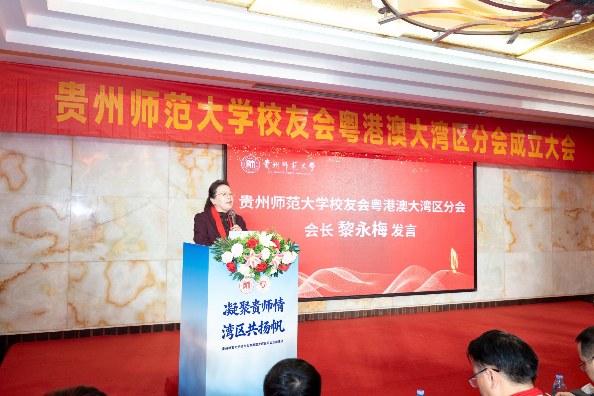 校友会粤港澳大湾区分会会长黎永梅表示,粤港澳大湾区分会的成立,离不开母校的悉心指导与大力支持。“贵州师范大学”六个字始终是全体校友共同的精神烙印,正是这份同心聚力,为分会发展筑牢了坚实根基。展望未来,粤港澳大湾区分会将紧扣“铸牢情感纽带、搭建赋能平台、深化校地联动、践行社会责任、健全运营机制”五大核心任务,致力于将分会打造成为校友们在大湾区的"暖心港湾"。分会将积极整合母校学术资源与科研成果,推动产学研用深度融合,既为校友企业发展注入强劲动能,也吸引优质资源反哺母校建设,以实际行动践行社会责任,彰显贵师大校友的卓越风采,着力打造一个有活力、有影响力、可持续发展的校友组织。