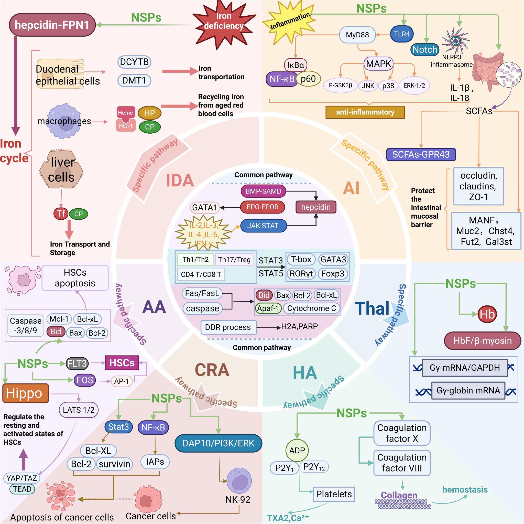 NSPs干预六种类型贫血的常见和特异性信号通路图