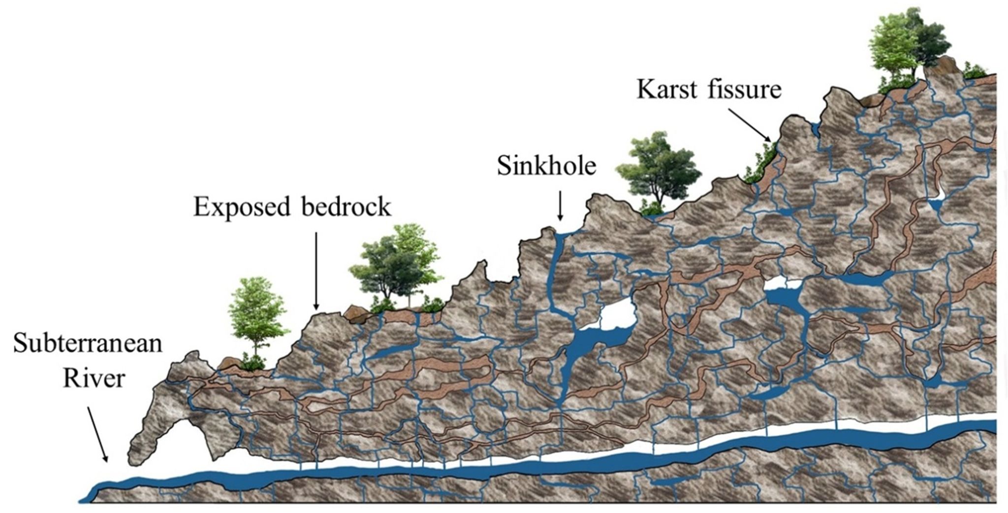 喀斯特区坡地二元水文地质结构示意图
