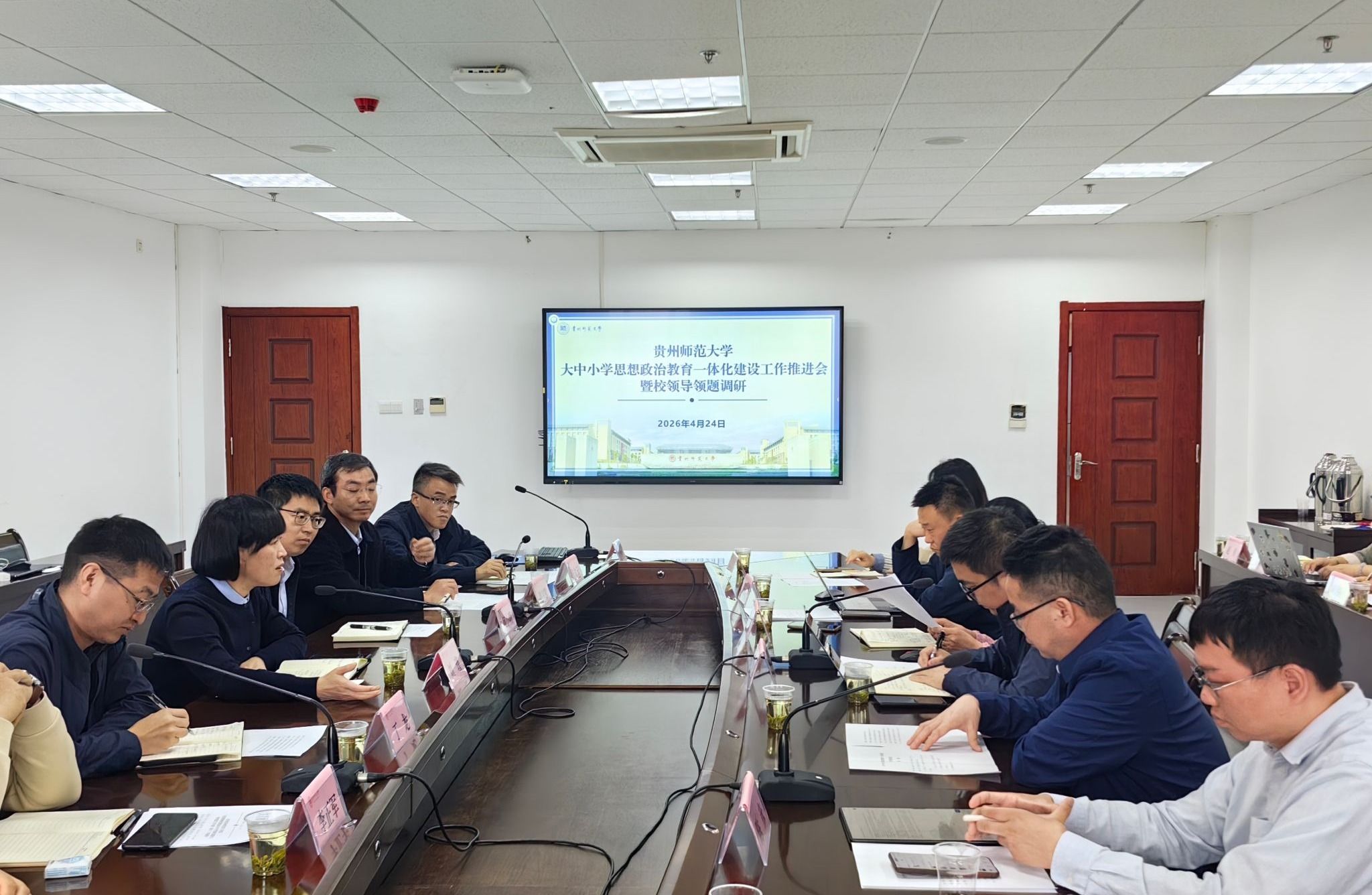 4月24日上午,学校召开大中小学思想政治教育一体化建设工作推进会暨校领导领题调研会议。副校长刘瑾,校党委常委、组织部部长何小明,校党委常委、宣传部部长丁龙出席。学校相关职能部门、学院及附属学校主要负责人、相关研究及教学团队参加。会上,基础教育研究院(学院)汇报了大中小学思政教育一体化建设校本课程开发、集体备课等近期重点工作推进情况。组织部、宣传部、学生工作部、校团委、发展规划处、马克思主义学院、网络空间安全学院等单位通报了有关工作开展情况及下一步工作打算。...