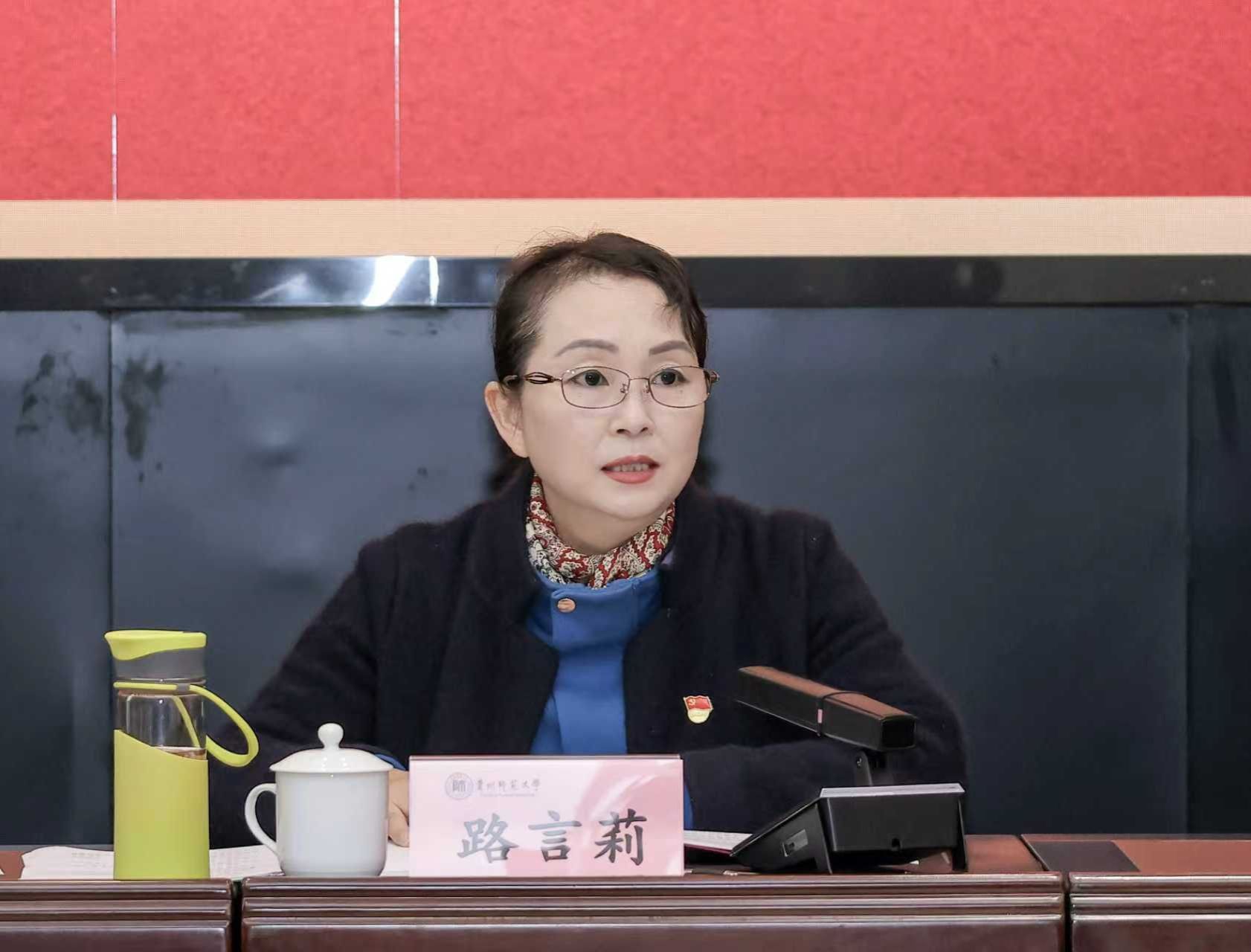 11月7日,由校党委组织部主办、马克思主义学院党委承办的第六期“致新”党支部书记论坛在东校区行政主楼六楼多功能厅举办,主题为“党建与业务深度融合的路径与保障探析”。校党委副书记路言莉出席并讲话。学校及贵阳人文科技学院有关基层党务工作人员、师生党支部书记代表共100余人参加了论坛。论坛由校党委常委、统战部部长,马克思主义学院党委书记路世传主持。