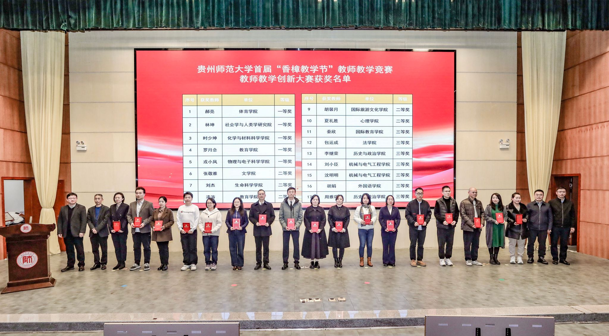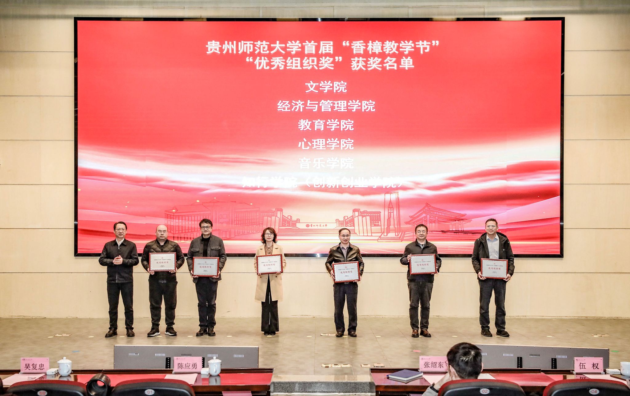 11月11日,贵州师范大学首届“香樟教学节”闭幕式暨颁奖仪式在东区会议中心一楼学术报告厅举行。校长张绍东出席并讲话,校领导陈应勇、伍权、张道伟、吴复忠出席,副校长管新福主持。各学院党政领导、职能部门与教辅单位负责人、师生代表参加。