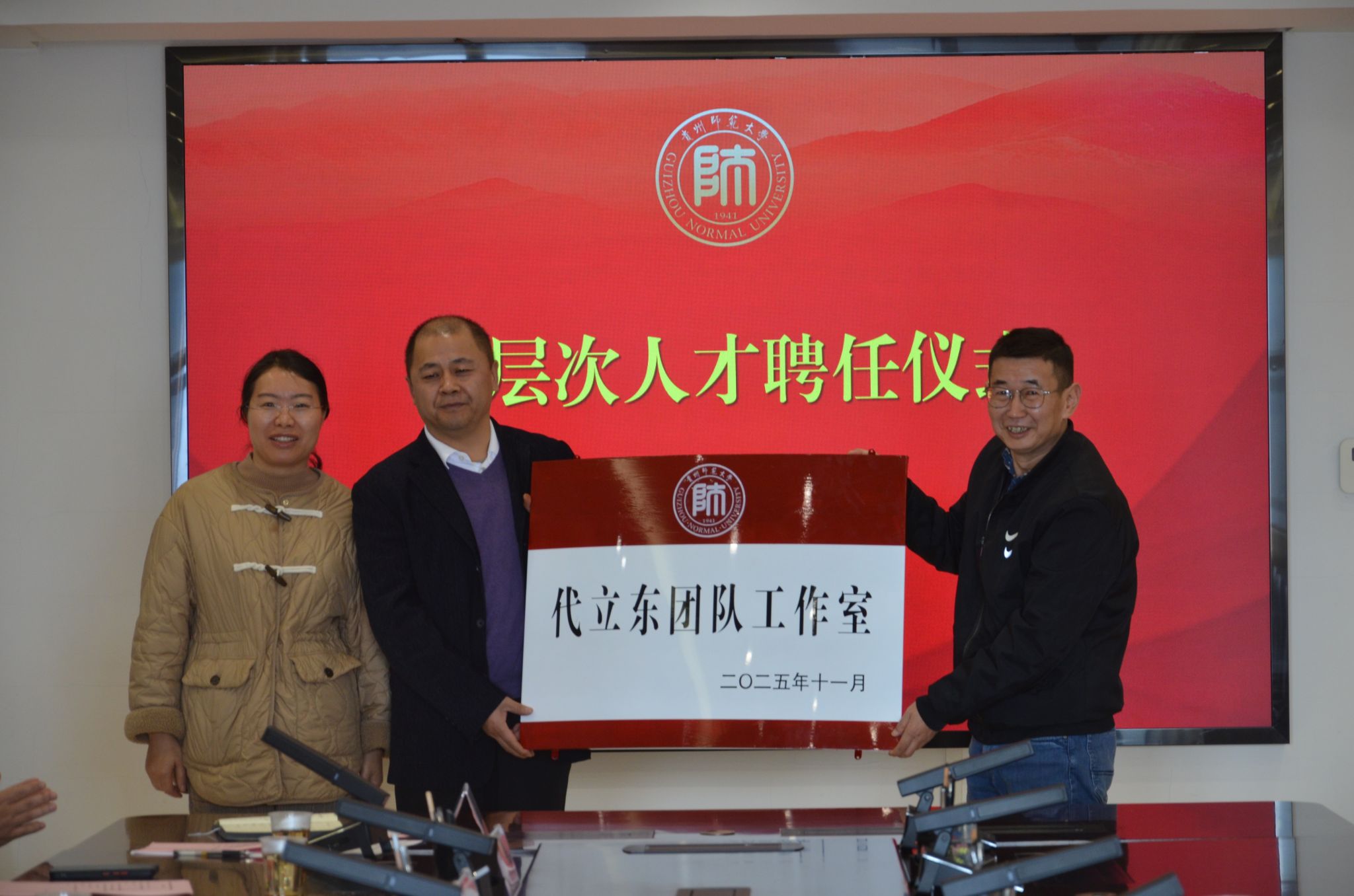 11月26日上午,学校举行国家级高层次人才代立东研究员及其团队聘任仪式。校长张绍东出席并为“代立东团队工作室”授牌。