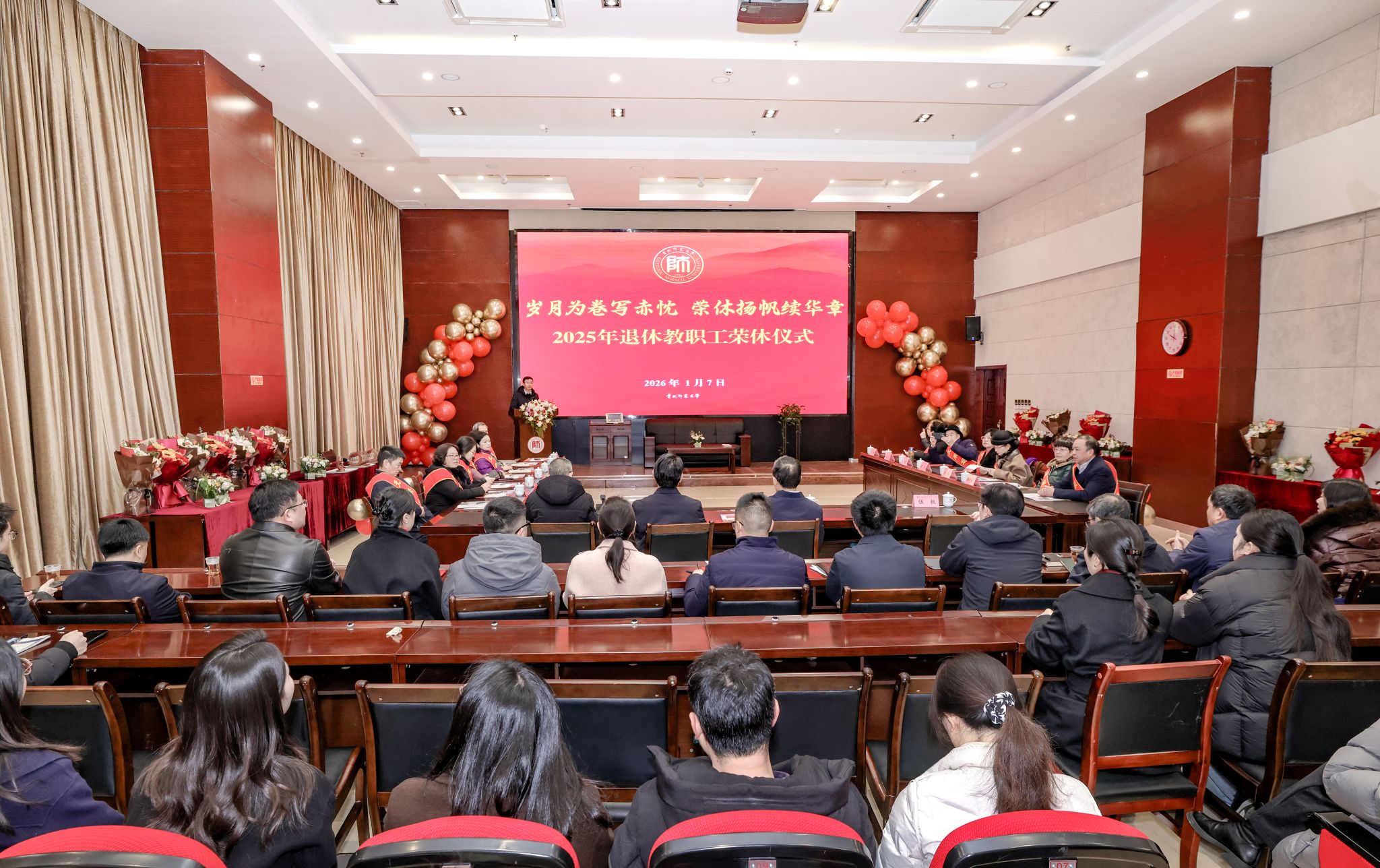 1月7日上午,学校在行政主楼六楼多功能厅举办2025年退休教职工荣休仪式。校党委书记黄其松,校党委副书记陈应勇,校党委常委、副校长伍权,副校长吴复忠出席。2025年荣休教职工代表、相关学院及职能部门负责人参加。