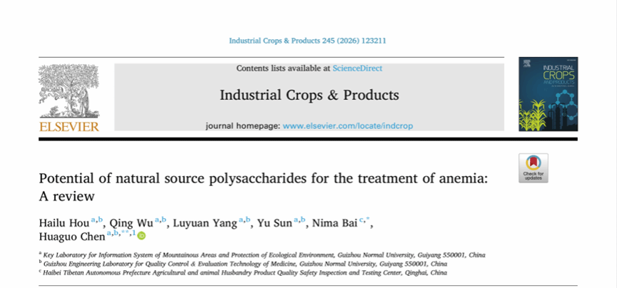 近日,我校山地重点实验室陈华国教授团队在农林科学领域国际TOP期刊《Industrial Crops and Products》(中科院SCI一区TOP,IF=6.2)在线发表题为“Potential of natural source polysaccharides for the treatment of anemia: A review”的综述论文。