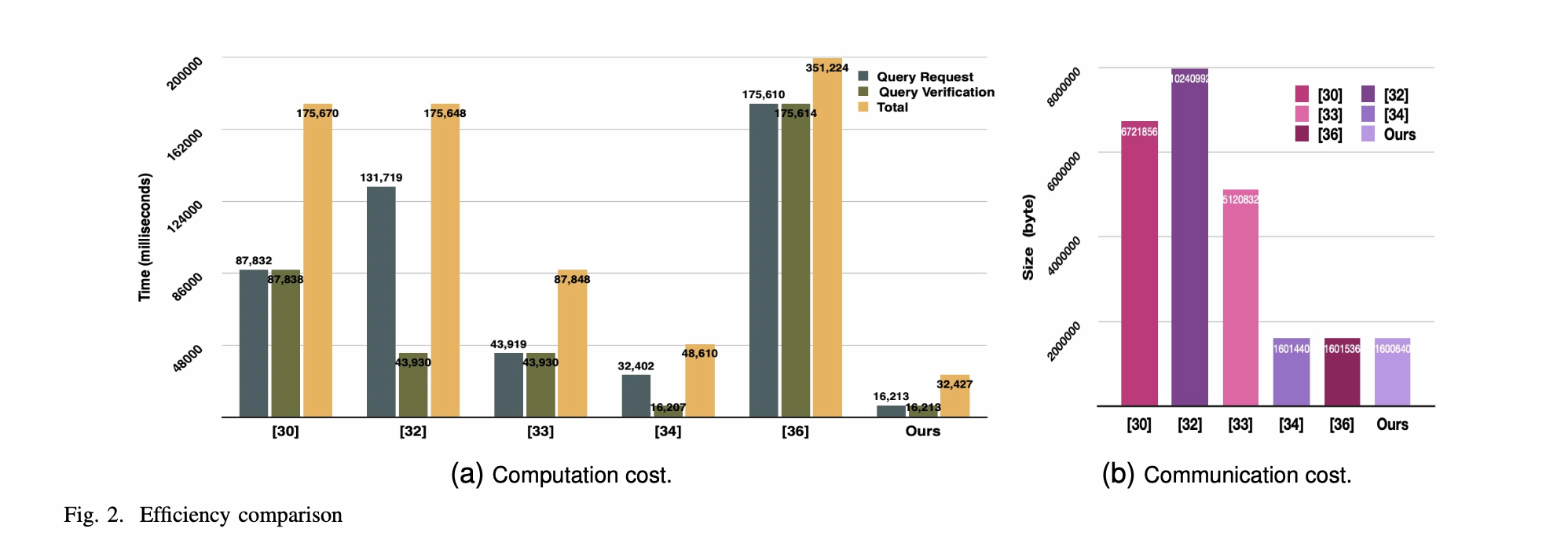 为进一步增强系统隐私保障,本方案还融合了非交互式零知识证明,确保从支付到服务器响应的全过程均在匿名状态下完成。本方案没有使用配对运算,效率分析表明,其计算成本仅为当前高效方案的9%。与同类方案相比,本方案在性能、效率方面都更具优势。