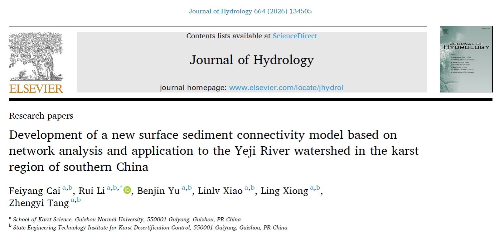 近日,我校喀斯特研究院李瑞研究员团队在水文学与地球科学领域TOP期刊《Journal of Hydrology》(中科院1区,IF=6.3)在线发表了题为“Development of a new surface sediment connectivity model based on network analysis and application to the Yeji River watershed in the karst region of southern China”的研究论文。该研究利用网络分析方法优化了传统泥沙连通性指数模型(IC),并基于中国南方典型喀斯特流域—野纪河流域石板塘水文站长系列高频实测泥沙数据进行了验证,证实了优化后模型的可靠性,从而发展了一种新的泥沙连通性指数模型SSCI。进一步基于新开发的SSCI模型,研究了流域泥沙输运动力学特征及作用机制。