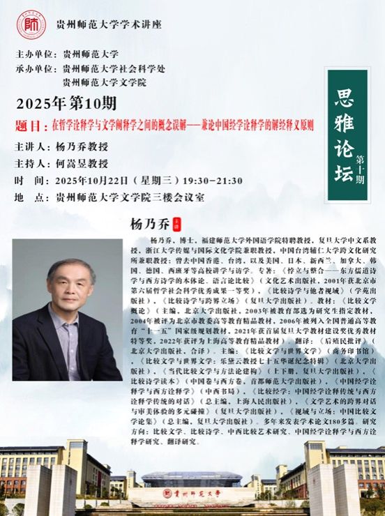 为持续提升学校人文社科科研水平,营造积极良好的学术环境和交流氛围,发挥学术交流在推动学术创新、带动学科发展、助力人才成长的积极作用,社会科学处、文学院特邀请复旦大学中文系教授、福建师范大学外国语学院特聘教授杨乃乔到我校开展专题讲座。活动安排如下: